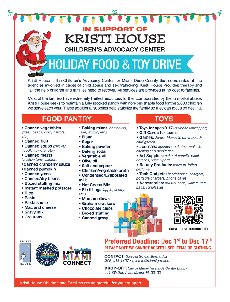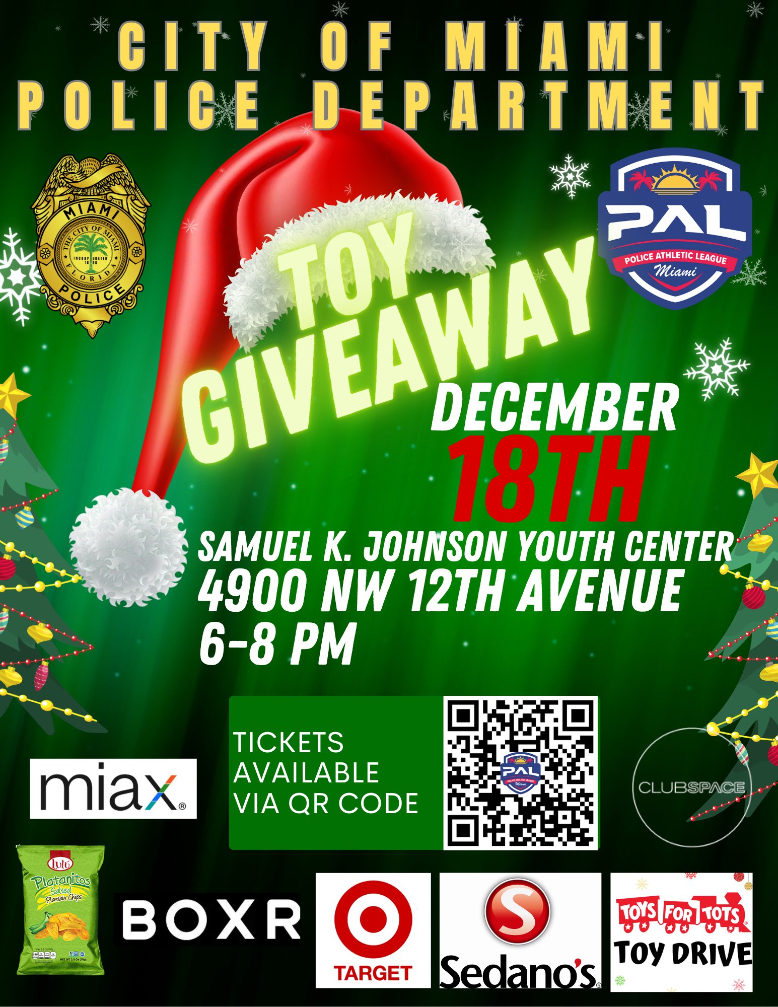 Miami Police Department invites you in TOY DRIVE on December 13,2025 between 10:00 AM and 3:00 PM. Click on the flyer for more info.